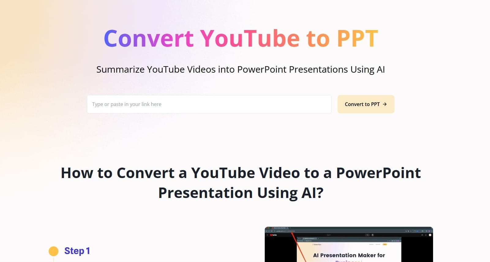 Access SlidesPilot's YouTube Video to PPT Converter.