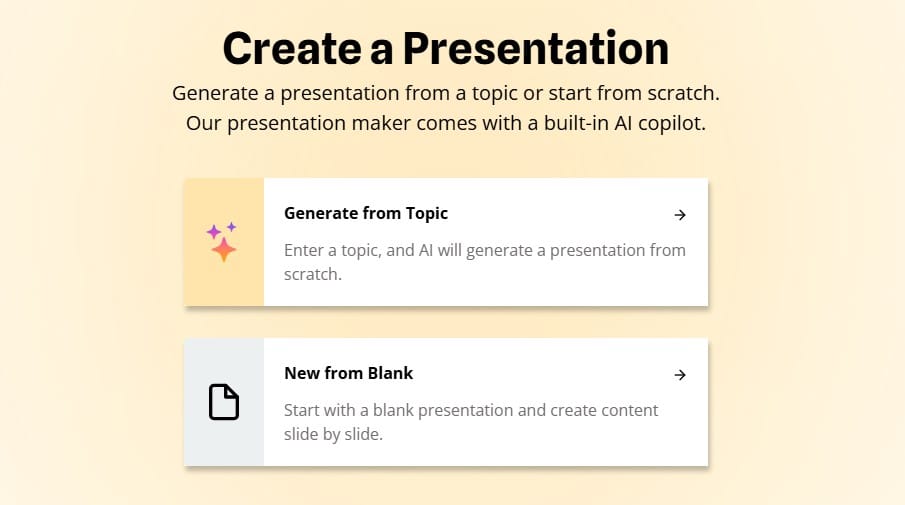 When choosing an AI presentation generator, prioritize platforms that offer most or all of the features mentioned above within a single ecosystem. This integration not only streamlines the presentation creation process but also eliminates time-consuming switching between different tools and ensures consistent formatting throughout your workflow. This ecosystem approach also enhances team productivity by standardizing format and enabling collaboration.