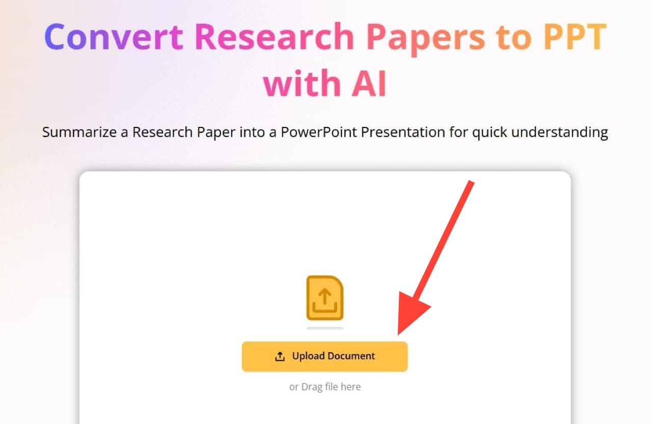 Step 2 - Upload the research paper that you would like to be used. You can choose to upload a PDF, Word, or PPT document.