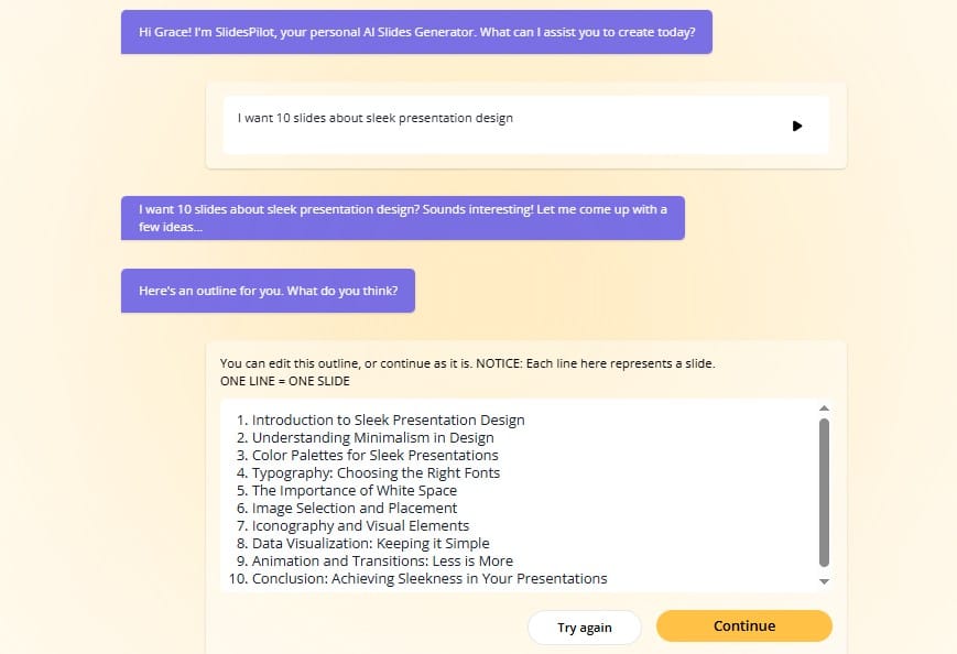Step 3: Click "Continue" and your presentation will be ready in 1-2 minutes.